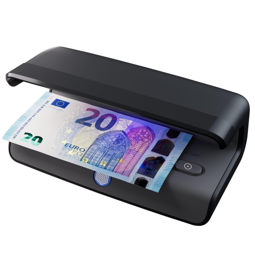DETECÇÃO UV BRILHANTE: Diga adeus às notas falsas com o Safescan 45 LED! Suas duas luzes UV brilhantes iluminam os elementos de segurança de notas, cartões de crédito e passaportes, permitindo que você os verifique com rapidez e precisão.