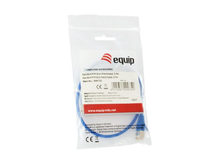 EQUIPCabo de conexão fino F/FTP Cat.6A 606140, 15 m, azulCabo de conexão fino F/FTP Cat.6A 606140, 15 m, azulO Cabo Patch F/FTP Cat.6A Slim da equip® é um cabo compacto com alto desempenho. Com um diâmetro de cabo de quase metade de um cabo Cat.6A padrão, é mais fácil de rotear e economiza espaço valioso em ambientes de alta densidade, como data centers e salas de telecomunicações. Com o Cabo Patch Fino Cat.6A, você pode acomodar mais cabos no mesmo espaço, economizando tempo e dinheiro na expansão ou substituição de caminhos de cabos. Características 1. Plugue angular. Não Cabo plano. Não Blindado. Sim Variado. Blindagem. F/FTP Conector 1. RJ45 macho Conector 2. RJ45 macho Especificações físicas. Comprimento do cabo. 15m Dimensões (L x P x A). 3,8 x 3,8 x 15000 mm Peso do produto (kg). 0,472 Especificações do sistema. Categoria. Cat.6A Material condutor. Cobre Tamanho do condutor (AWG). 32AWG Material do revestimento do cabo. LSZH Outros. Aprovação e Conformidade. RoHS Conteúdo da embalagem. Cabo de conexão fino Cat.6A F/FTP Em geral. Cor. Azul EAN. 4015867209820 Número do modelo. 606140 > cabos de rede1990NovoProduto disponível