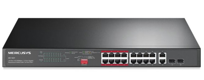 Altura: 4.4 cm > redes switch8890NovoProduto disponívelO Mercusys MS118CP V1 foi concebido para uma rede confiável com um conjunto robusto de funcionalidades. Este switch tem 16 portas, incluindo 8 portas PoE+ que fornecem energia de forma eficiente a dispositivos compatíveis, tornando-o adequado para empresas que necessitam de soluções Power over Ethernet. Com uma capacidade de comutação de 7,2 Gbps e uma taxa de encaminhamento de pacotes de 5,36 Mpps, suporta transmissão de dados a alta velocidade, mantendo o desempenho da rede mesmo sob cargas pesadas. O seu design compacto para secretária e montagem em rack garante versatilidade na implementação, enquanto funcionalidades como isolamento de portas e autoaprendizagem de endereços MAC aumentam a segurança e a eficiência.