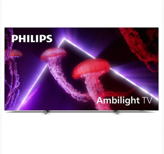 Philips OLED 77OLED807 Android TV 4K UHD. Tamanho do ecrã na diagonal: 195,6 cm (77"), Resolução: 3840 x 2160 pixels, Tipo de HD: 4K Ultra HD, Tecnologia de apresentação: OLED, Formato do ecrã: Plano. Smart TV. Proporção de imagem nativa: 16:9. Sistema de formato de sinal digital: DVB-C, DVB-S, DVB-S2, DVB-T, DVB-T2, DVB-T2 HD. Wi-Fi, Ethernet LAN. Cor do produto: Metálico