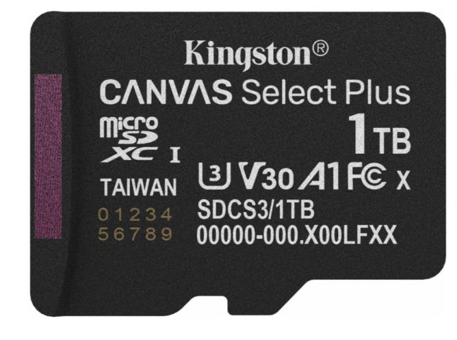 Cartão de memória flash Kingston Canvas Select Plus 1 TB A1 / Video Class V30 / UHS-I U3 / Class10 microSDXC UHS-I , SDCS3/1TBSP
