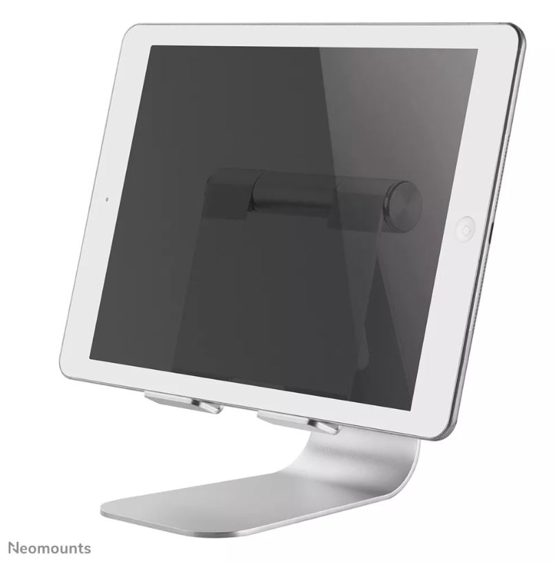 O Neomounts DS15-050SL1 é um suporte para smartphones e tablets de até 11". A inteligente opção de inclinação (90°) permite que o suporte se ajuste ao ângulo de visão ideal. O suporte para tablet é ideal para videochamadas com as mãos livres, assistir a um filme ou jogar.