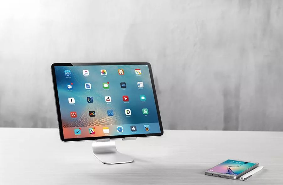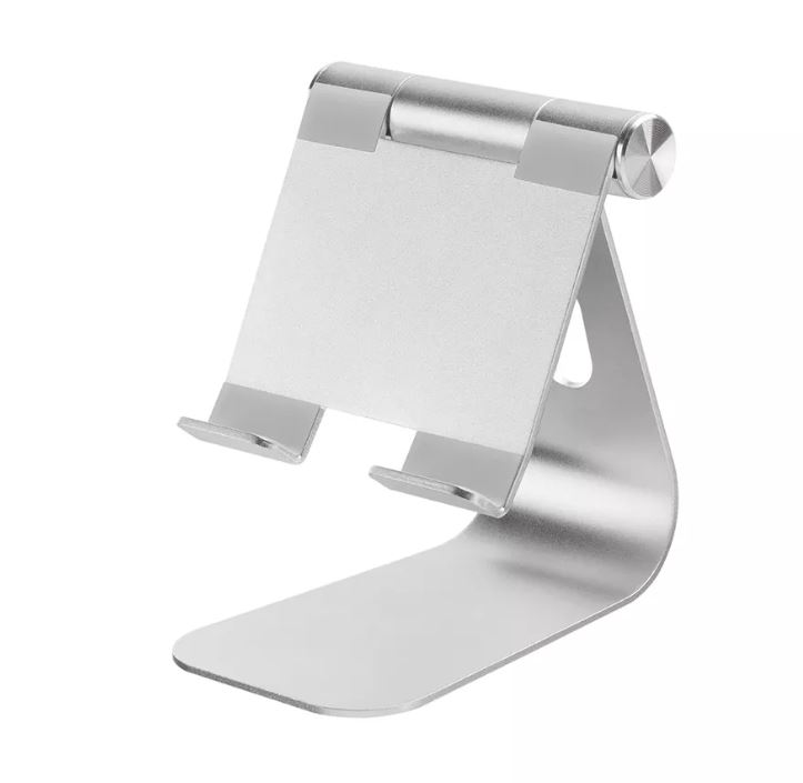 Graças à configuração aberta, a porta de carregamento permanece acessível e os fios de carregamento podem ser direcionados para a parte traseira do suporte. O design leve e compacto torna o suporte ideal para levar com você para onde quiser. As almofadas de silicone antiderrapantes e o batente de segurança garantem um posicionamento firme do seu tablet.