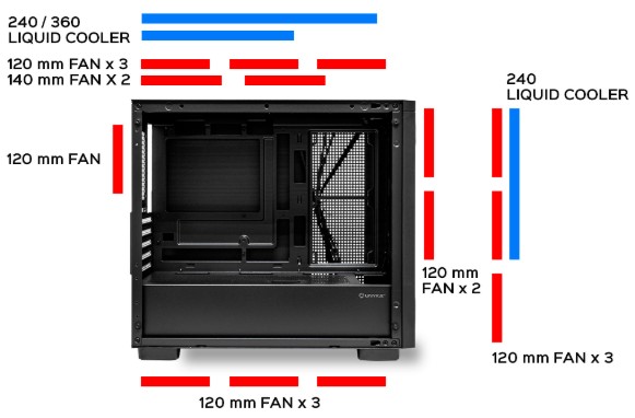 Diâmetros de ventiladores laterais compatíveis 120 mm