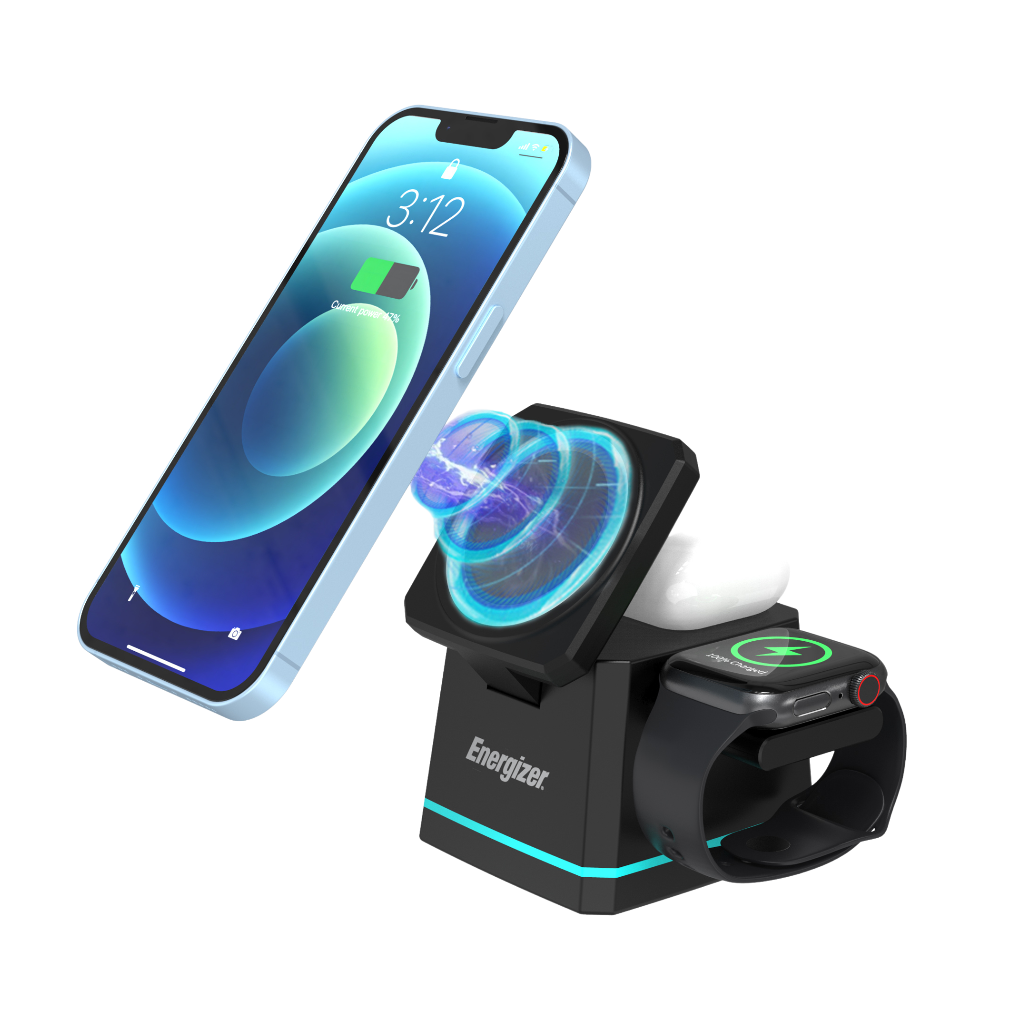 Carregue seu telefone, fones de ouvido e relógio ao mesmo tempo.