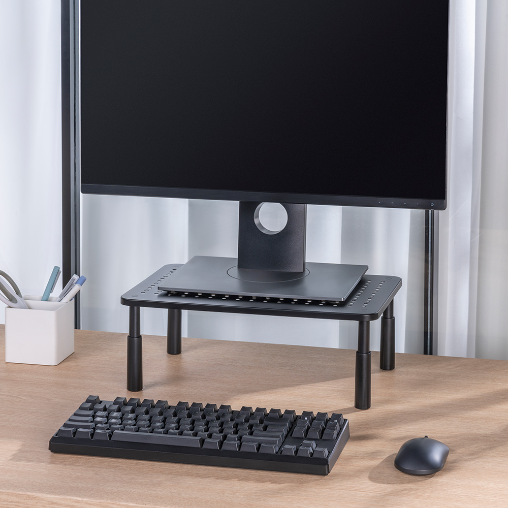 A Base Ergonómica para Monitor Napofix® ERGO130, com capacidade de carga de 20kg, é uma opção perfeita para quem não precisa de braços de monitor complexos e deseja elevar o monitor a uma posição de leitura mais confortável, proporcionando espaço de trabalho adicional e maior área de armazenamento para um espaço de trabalho organizado. Com um ajuste em altura que permite fixar a base a 100 120 140mm de altura para um ajuste ideal da posição de leitura. A superfície ventilada ajuda a resfriar o dispositivo e prolonga a vida útil do dispositivo. Reduza a fadiga ocular enquanto trabalha de forma mais inteligente e organizada.