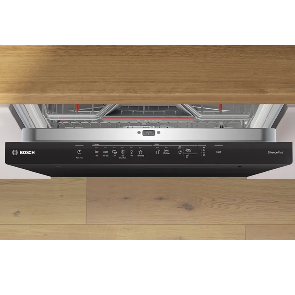 AVGMÁQUINA DE LAVAR LOUÇA BOSCH - SMP4ECC71S -MÁQUINA DE LAVAR LOUÇA BOSCH - SMP4ECC71S -CARACTERÍSTICAS DESTAQUE | Classe de Eficiência Energética¹: B | Energia² / Água³: 65 kWh / 9 litros | Capacidade: 14 talheres | Duração do programa⁴ 3:35 (h:min) | Nível de ruído: 42 dB(A) re 1 pW | Classe de Eficiência de Ruído: B | | PROGRAMAS / FUNÇÕES | 6 Programas: Eco 50 °C, Auto 45-65 °C, Intensivo 70 °C, 1 hora 65 °C, Glass 40 °C, Favorito | Programa Favorito | 3 funções especiais: Home Connect - Controlo remoto via Wi-Fi, EfficientDry, SpeedPerfect+ | Programa limpeza de manutenção da cuba | Funções adicionais disponíveis através da app Home Connect: Night Program, Silence on demand | | TECNOLOGIA E SENSORES | Sistema de secagem EfficientDry | AquaSensor | Assistente de dosagem | Motor EcoSilence Drive | Identificação automática do tipo de detergente | Sistema de filtragem com autolimpeza, tripartido | Cuba em aço inoxidável | | SISTEMA DE CESTOS | Sistema de cestos MaxFlex com suportes rebatíveis identificados a vermelho | Zona ExtraClean: limpeza intensiva mesmo para sujidade mais resistente | Gaveta Vario | Cesto superior regulável em altura com RackMatic | Rodas de fácil deslize | Proteções antiderrapantes no cesto superior | Cesto inferior com travão para evitar descarrilamento | Suportes rebatíveis no cesto superior | Suportes rebatíveis no cesto inferior (6x) | Tabuleiro de suporte para chávenas no cesto superior (2x) | Suportes para chávenas no cesto inferior (2x) | | FUNCIONAMENTO / MANUSEAMENTO | Home Connect para controlo remoto | Painel de comandos TouchControl (metalizado) | Comando TouchControl de acesso superior | InfoLight visível no puxador | Programação diferida até 24 horas (via app) | | SEGURANÇA E ACESSÓRIOS | AquaStop com garantia vitalícia contra danos provocados por eventuais fugas de água | Sistema GlassProtect | Funil para reabastecimento de sal de regeneração (incluído) | Protecção contra vapores | Rodapé inox de colocação opcional, incluído | | MEDIDAS | (AxLxP): 81.5 x 59.8 x 57.3 cm | | ¹ Escala de Classes de Eficiência Energética de A a G | ² Consumo de energia em kWh para 100 ciclos (no programa Eco 50 °C) | ³ Consumo de água em litros por ciclo (no programa Eco 50 °C) | ⁴ Duração do Programa Eco 50 °C > lavar loiça - 60cm95490NovoProduto disponível