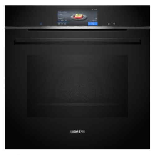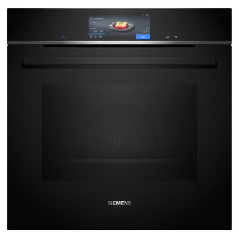 SIEMENSFORNO SIEMENS - HB778G3B1 -FORNO SIEMENS - HB778G3B1 -TIPO DE FORNO/MODO DE AQUECIMENTO | Forno multifunções com 13 modos de aquecimento:  Ar quente 4D, calor superior/inferior, grelhar com ar quente, grelhar - grande quantidade, Grelhar - pouca quantidade, função pizza, Função coolStart, calor inferior, assar lentamente, Preaquecer loiça, Manter quente, ar quente suave, Calor superior/inferior suave | Intervalo de temperatura 30 °C - 300 °C | Volume: 71 litros | | SISTEMA DE RAILES | Número de níveis de forno para colocar tabuleiro ou grelha: 5 | Railes telescópicos não incluídos. Possibilidade de equipar posteriormente com acessório opcional | | DESIGN | touchControl | | LIMPEZA | activeClean® - sistema automático de limpeza pirolítica | humidClean | Interior da porta em vidro | | CONFORTO | Assistente do forno com controlo por voz | TFT-Touchdisplay Pro | Relógio eletrónico, com regulação da duração e fim de confeção | Sugestão automática da temperatura para cada função, Indicação da temperatura atual, Controlo de aquecimento, Termo sonda | Porta do forno com abertura rebatível, softClose, softMove (abertura suave da porta) | softMove (abertura suave da porta) | cookControl Pro | roastingSensor Plus | Pré-aquecimento rápido automático | Função coolStart | Iluminação interior em LED | Turbina de arrefecimento | Home Connect: controlo remoto através da app | | ACESSÓRIOS | Acessórios incluídos: tabuleiro esmaltado, grelha, tabuleiro universal | | SEGURANÇA E AMBIENTE | Porta com temperatura muito baixa | Temperatura baixa da porta durante a autolimpeza pirolítica | Porta com 4 vidros CoolTouch | Bloqueio eletrónico da porta, Bloqueio de segurança para crianças, Desligar automático de segurança do forno, Indicador de calor residual, Tecla de início/fim, Interruptor contacto da porta | | INFORMAÇÃO TÉCNICA | Comprimento cabo elétrico: 120 cm | Tensão nominal: 220 - 240 V | Potência de ligação 3.6 kW | Classe de eficiência energética: A+ (numa escala de classes de eficiência energética de A+++ até D), Consumo e energia por ciclo na função de aquecimento convencional (ar quente): 0.87 kWh | Número de cavidades: 1, | Fonte de energia: elétrica | Volume da cavidade:71 litros | | MEDIDAS | Dimensões do aparelho (AxLxP): 595 x 594 x 548 mm | Dimensões do nicho (AxLxP): 585-595 x 560-568 x 550 mm > fornos114490NovoProduto disponível