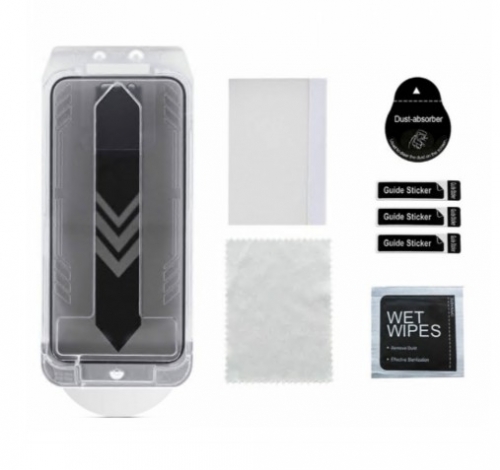 Conteúdo do pacote Protector de tela, kit de limpeza, espátula, quadro de aplicador