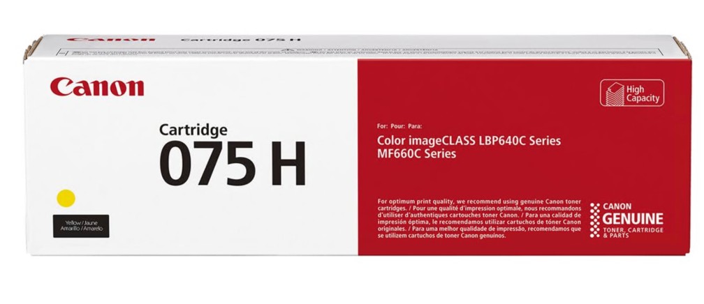 Descrição: Canon 075 H - Alta capacidade - amarelo - original - caixa - cartucho de toner - para imageCLASS LBP646Cdw, LBP647Cdw, MF662Cdw, MF663Cdw, MF665Cdw