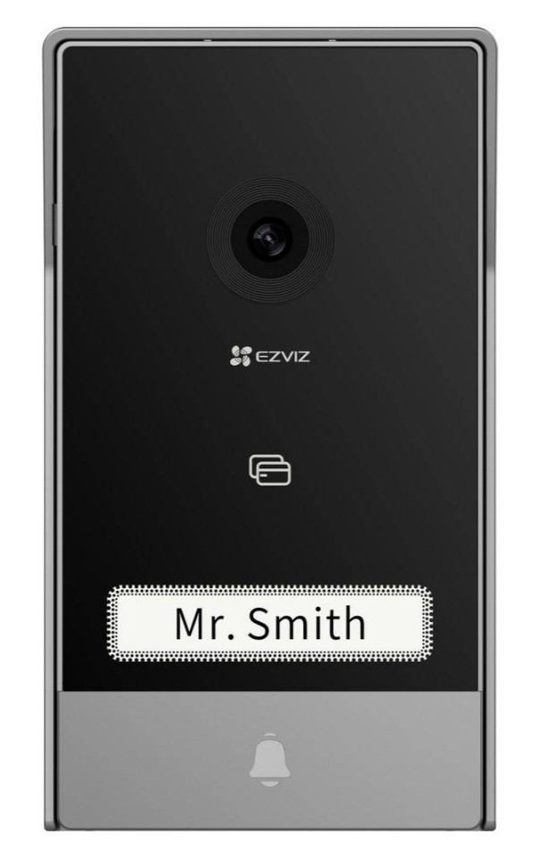 Nomes: Três cartões de nome escritos à mão no total (um já no painel do intercomunicador). A luz pode ser acesa ou apagada.