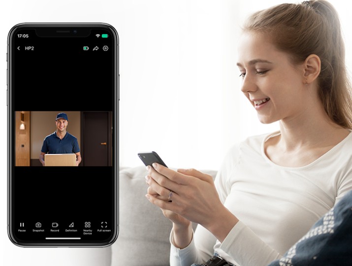 Pare de se preocupar em não conseguir enxergar bem através de um olho mágico estreito. Com a lente inteligente da HP2, agora você pode ter uma visão muito mais ampla e nítida de quem está entrando e saindo. Do rosto do entregador ao que ele segura nas mãos, é difícil não notar nada.