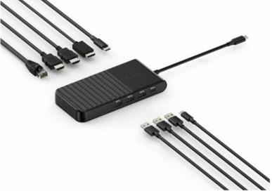 Interfaces de Vídeo 2 x HDMI, DP > portateis acessorios11390NovoProduto disponívelA Kensington UH1500P EQ é uma estação de acoplamento versátil concebida para melhorar a conectividade e a produtividade. Com as suas múltiplas opções de interface, incluindo USB-C 3.2 Gen 1, USB-A, Ethernet, DisplayPort e HDMI, esta estação de acoplamento permite uma integração perfeita com vários dispositivos. A capacidade de suportar configurações de ecrã duplo e triplo com uma resolução máxima de 1080p garante que os utilizadores possam desfrutar de imagens de alta qualidade em vários ecrãs.