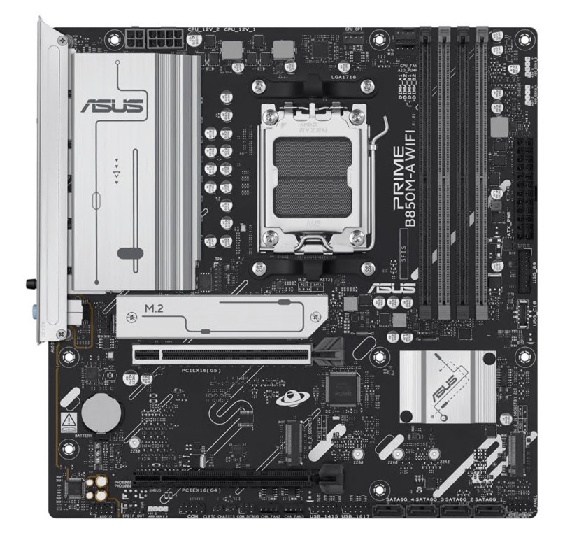 A ASUS PRIME B850M-A foi concebida com 4 x SATA-600 (RAID) e 3 x soquetes M.2 para acomodar vários dispositivos de armazenamento, melhorando o desempenho do sistema e a gestão de dados.
