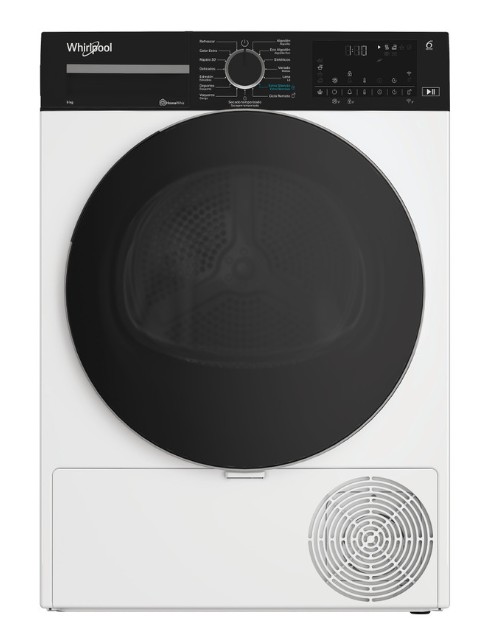 Com IVAEsta máquina de secar roupa de livre instalação da Whirlpool inclui: tambor de excecional capacidade de 9 kg, para que nunca lhe falte espaço. Tecnologia exclusiva 6º SENTIDO que monitoriza constantemente a humidade do tambor, protegendo a sua roupa e proporcionando os melhores resultados de secagem. Conectividade, que permite ao aparelho receber informação sobre o ciclo de lavagem da sua máquina de lavar roupa e ajusta as definições em conformidade, para obter os resultados ideais. Elegante design da porta. Tecnologia de bomba de calor que reaquece eficazmente o ar no aparelho, garantindo assim uma redução significativa do consumo de energia.
