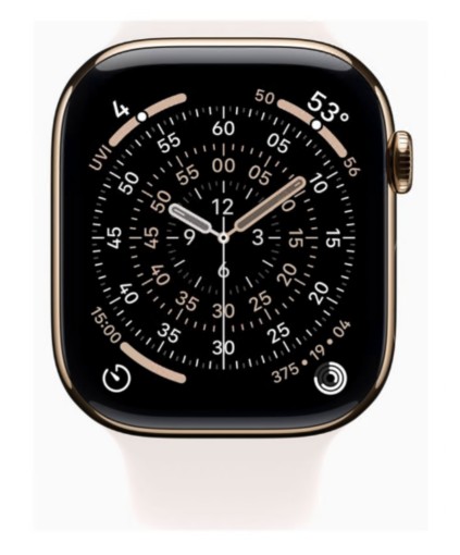 | Visor | Retina LTPO3 OLED 416 x 496 pixeis - 326 ppi - vidro de safira - always-on display |