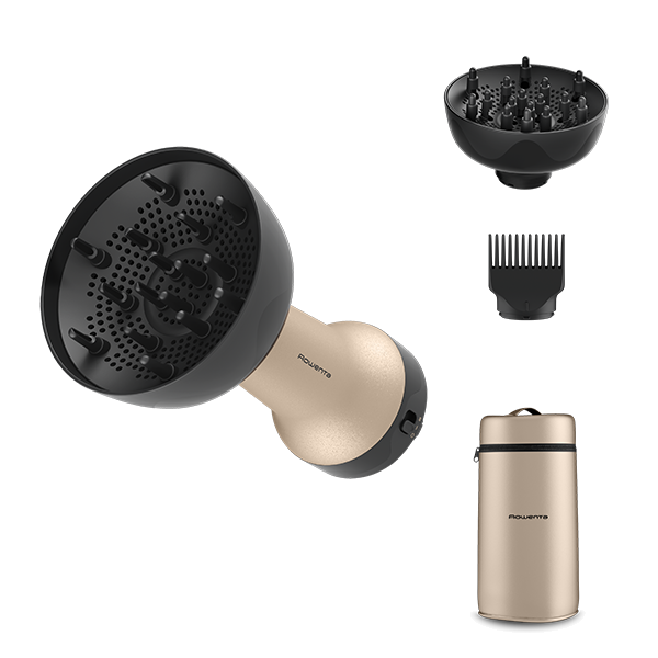 A elegante bolsa de arrumação oferece um secador difusor pronto a viajar e fácil de arrumar, para ter caracóis definidos em qualquer lado.