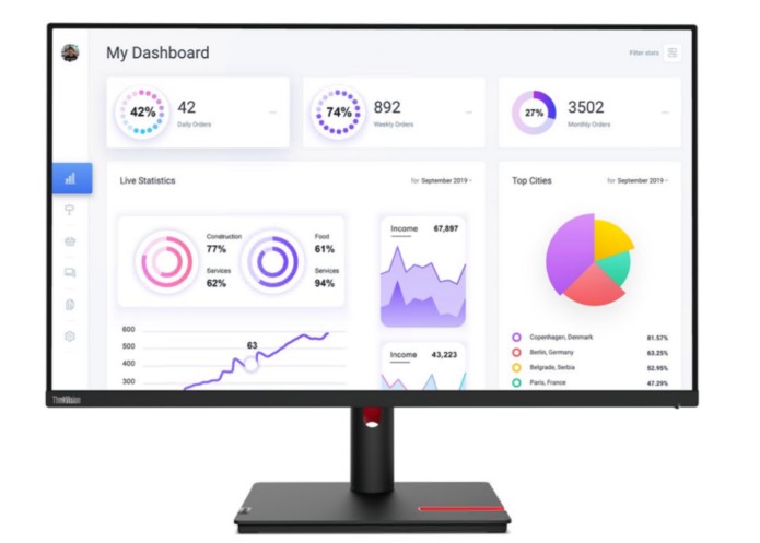 A tela oferece uma qualidade de imagem extremamente nítida respaldada por uma gama de cores 99% sRGB, uma taxa de contraste muito alta de 1000:1 e 350 nits de brilho que promete cores incrivelmente vibrantes e verdadeiramente naturais. O ThinkVision T32p-30 é facilmente o melhor monitor para trabalho intenso de dados, o que torna fácil navegar e visualizar planilhas grandes, painéis repletos de imagens e editar conteúdo com facilidade.
