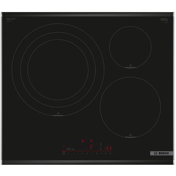 Tipo de Mesa: Indução / Queimadores/Zonas: 3 Z / Potência: 7400 W / Comandos: Frontais / Altura: 5,1 cm / Largura: 60,6 cm
