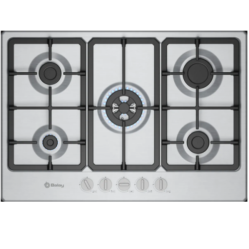 Tipo de Mesa: Gás / Queimadores/Zonas: 5 G / Gás: Butano / Propano / Comandos: Frontais / Altura: 5,4 cm / Largura: 75 cm