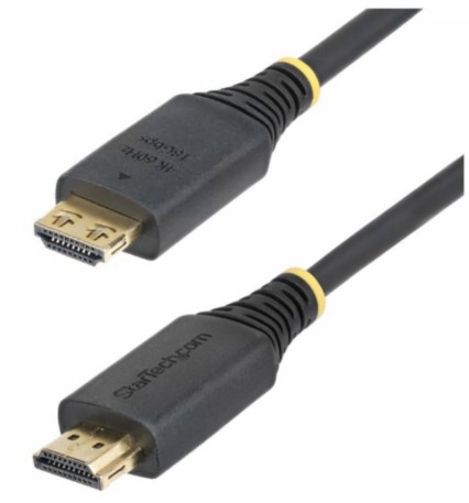 Recursos Sem halogéneo, cabo passivo, suporte 4K60Hz, suporte a 1440p (UWQHD) 144Hz, suporte para 1080p a 240Hz > cabos de vídeo790NovoProduto disponívelO cabo HDMI da StarTech.com oferece desempenho e versatilidade para qualquer configuração audiovisual. Com tecnologia blindada e conectores banhados a ouro duráveis, este cabo de alta velocidade garante que imagens de alta resolução e áudio multicanal sejam transmitidos sem interferência. Projetado para suportar resoluções de até 4K a 60 Hz e recursos como Dolby Atmos e HDR 10, ele aprimora a experiência de visualização. O cabo também está equipado com conectores de fixação e alívio de tensão, proporcionando um cabo confiável e fácil de usar, mantendo um perfil elegante. Graças a uma vida útil de 10 000 inserções e 2000 dobras, este cabo foi projetado para durabilidade a longo prazo. É compatível com as normas RoHS e HDCP 2.2, garantindo compatibilidade com vários dispositivos, como monitores, televisores e ecrãs. Desfrute de áudio rico e imagens impressionantes com o versátil cabo HDMI da StarTech.com, projetado para atender às necessidades de qualquer sistema de entretenimento doméstico.