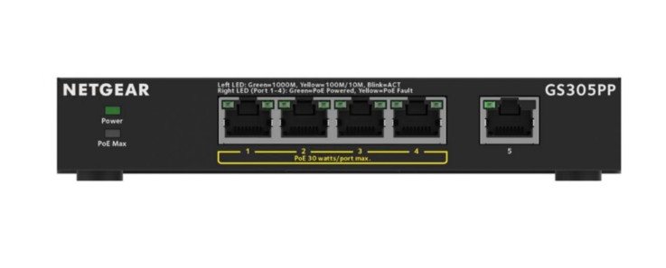| Descrição do produto | NETGEAR 300 Series GS305PP - interruptor - SOHO - 5 portas - sem gestão |
