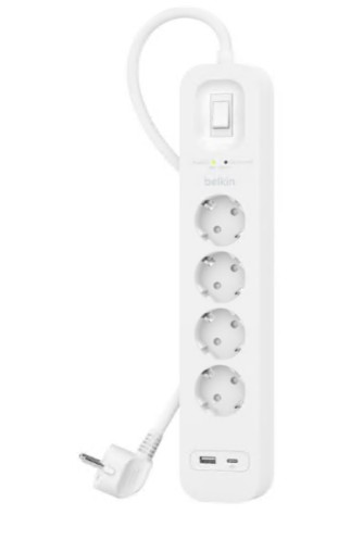 BELKINTomada Protector contra picos de corrente Belkin Connect SRB001VF2M-V2 com portas USB-C e USB-A conectores de saída: 4 2 m caboTomada Protector contra picos de corrente Belkin Connect SRB001VF2M-V2 com portas USB-C e USB-A conectores de saída: 4 2 m caboO protetor contra sobretensão Belkin Connect garante uma gestão eficiente da energia e proteção dos dispositivos com os seus quatro conectores de saída, incluindo portas USB-C e USB-A. Com um comprimento de 2 m, este protetor contra sobretensão foi concebido para se adaptar perfeitamente a várias configurações, podendo ser montado na parede para economizar espaço. O interruptor de alimentação integrado permite um controlo fácil da fonte de alimentação, aumentando a conveniência do utilizador, enquanto a luz indicadora «Protected» oferece tranquilidade, sinalizando que os dispositivos conectados estão protegidos. Este protetor contra sobretensão possui recursos de supressão de sobretensão com uma classificação de energia de sobretensão de 525 joules. Ele pode proteger equipamentos conectados avaliados em até 25.000 dólares americanos, garantindo a segurança de dispositivos valiosos. Seu recurso Power Delivery (PD) facilita o carregamento rápido, tornando-o uma adição prática a qualquer espaço de trabalho ou configuração doméstica, atendendo a diversas necessidades de carregamento. Ficha Técnica Descrição do produto Belkin Connect - protector contra picos de corrente - com portas USB-C e USB-A Tipo de dispositivo Protector contra picos de corrente - externo Comprimento de Fio 2 m Conectores de saída 4 x Potência (sobretensão) ¦ 1 x 24 pin USB-C ¦ 1 x Tipo A USB 4 pinos > tomadas6190NovoProduto disponível