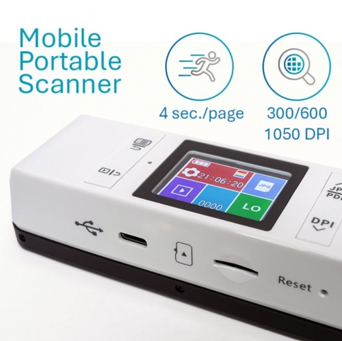 O IRIScan Book 7 é um scanner ultraleve e compacto (330 g, 25,5 x 4,5 x 3,5 cm), projetado para digitalização em qualquer lugar, sem a necessidade de um computador. Graças ao seu sistema de rolos duplos, ele digitaliza de forma suave e rápida – 1 segundo por página . Suporta resoluções de até 1200 dpi e salva arquivos diretamente em um cartão MicroSD™ . O visor LCD integrado permite visualizar o conteúdo digitalizado em tempo real.