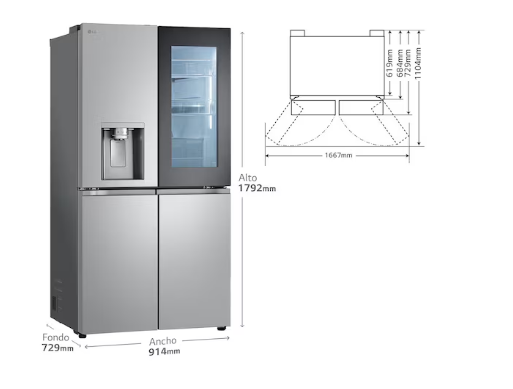 LGSide by Side LG GMG961MBKE, InstaView™, Sem necessidade de ligação à águaSide by Side LG GMG961MBKE, InstaView™, Sem necessidade de ligação à águaPrincipais características Instaview: Bata para ver o interior e economize energia. Garantia vitalícia no compressor Resfriamento da porta: O fluxo de ar em cascata pela porta resfria mais rápido e uniformemente em todos os cantos. Resfriamento Linear: Mantém uma temperatura mais estável, sem flutuações (+/- 0,5ºC). Metal Fresh: Design interior metálico premium. Sem ligação à rede de água e sem reservatório interno. Maximize o espaço interior com a máquina de gelo oculta integrada na porta. Sistema de gelo SpacePlus™ > americano / side by side186790NovoProduto disponível