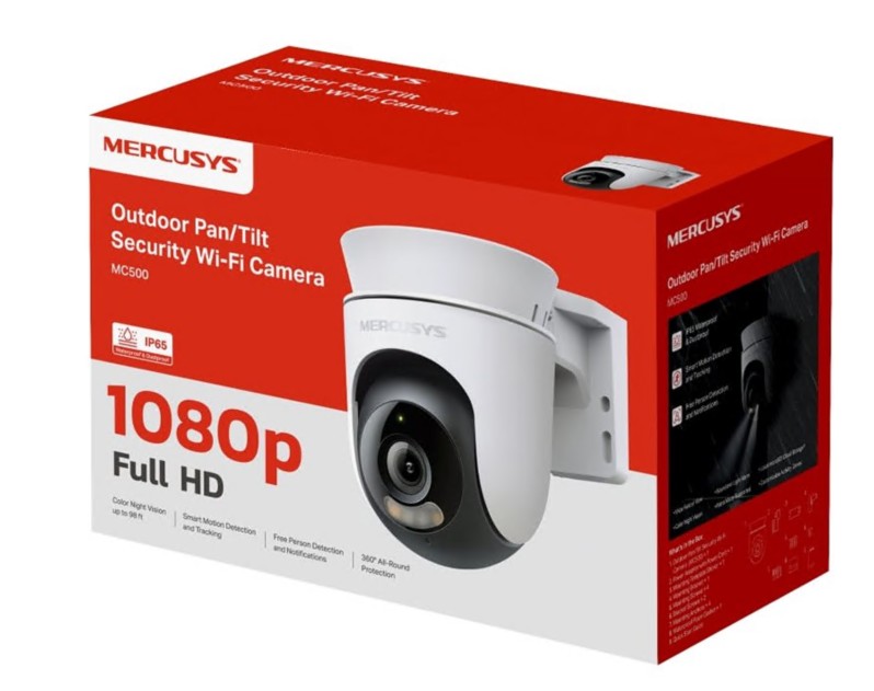 A Mercusys MC500 V1 é uma câmara de vigilância para exterior concebida para satisfazer as exigências de vários ambientes. Com uma construção robusta com classificação IP65 para proteção contra intempéries, pode funcionar eficazmente em temperaturas que variam entre -20 °C e 50 °C e suportar níveis elevados de humidade. A câmara possui resolução de vídeo digital avançada de 1080p, garantindo imagens nítidas e vívidas, enquanto os seus LEDs infravermelhos fornecem capacidades de visão noturna confiáveis até 29,9 metros, tornando-a adequada para monitorização 24 horas por dia, 7 dias por semana. Além disso, a inclusão das tecnologias de deteção de pessoas por IA e deteção de movimento aumenta a segurança, permitindo alertas imediatos e rastreamento de qualquer movimento.