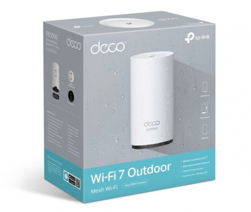O sistema utiliza encriptação WPA3-Personal juntamente com uma firewall de inspeção de pacotes com estado para garantir um ambiente de rede seguro. > redes routers16890NovoProduto disponívelO sistema TP-Link Deco BE25-Outdoor V1 oferece conectividade avançada num design durável, garantindo um desempenho confiável numa variedade de condições ambientais. Com uma taxa de transferência de dados de 3,6 Gbps e suporte para até 150 dispositivos conectados, ele melhora a rede doméstica, mantendo conexões de alta velocidade. O sistema é compatível com Wi-Fi 6 e Wi-Fi 7, proporcionando experiências online perfeitas, seja para streaming ou navegação. O seu exterior com classificação IP65 garante proteção contra poeira e água, tornando-o adequado para uso ao ar livre. A compatibilidade com controle de voz com o Google Assistant e Alexa permite o fácil gerenciamento de dispositivos domésticos inteligentes.