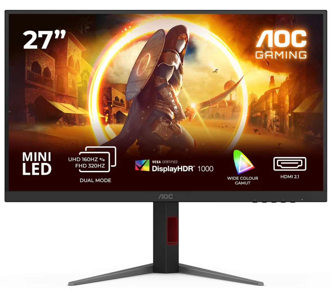 OC G4 U27G4XM. Tamanho do ecrã na diagonal: 68,6 cm (27"), Resolução: 3840 x 2160 pixels, Tipo de HD: 4K Ultra HD, Tecnologia de apresentação: LED, Tempo de resposta: 1 ms, Proporção de imagem nativa: 16:9, Ângulo de visão (horizontal): 178°, Ângulo de visão (vertical): 178°. Hub USB integrado, Versão hub USB: 3.2 Gen 1 (3.1 Gen 1). Suporte VESA, Ajuste de altura. Cor do produto: Preto, Vermelho