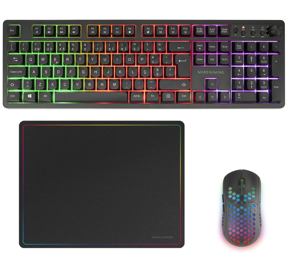 Dimensões Rato 125 x 64 x 42 mm > conjunto teclado e rato3590NovoProduto disponívelDescubra a liberdade sem fios definitiva com o MCPWX, o combo gaming 3 em 1 que reúne um teclado completo FRGB, um mouse ultraleve e um tapete de alta precisão. Graças à tecnologia DualPro Link 2.4GPRO, cada periférico opera através do seu próprio canal USB dedicado, garantindo uma ligação sem fios estável, sem interferências nem latência, para uma experiência de jogo fluida e confiável.