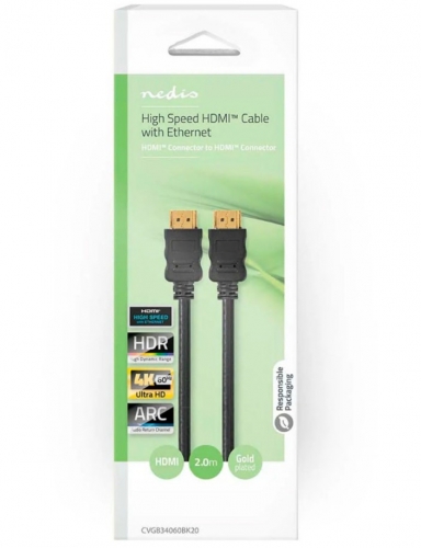 Conector HDMI™ | Conector HDMI™ | 4K a 60Hz | ARC | 18 Gbps | 2,00 m | Redondo | PVC | Preto | Caixa