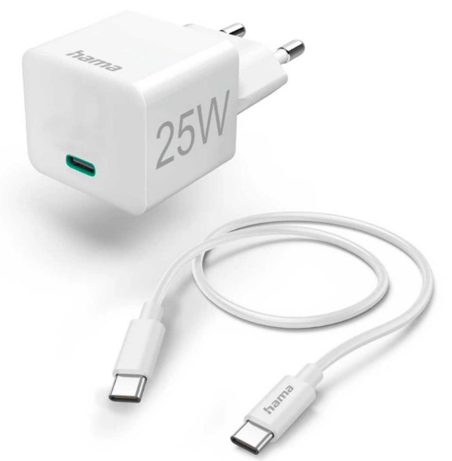 HAMA CARREGADOR RÁPIDO COM CABO DE CARREGAMENTO USB-C, MINI CARREGADOR, PD, 25 W, 1,5 M, BRANCO