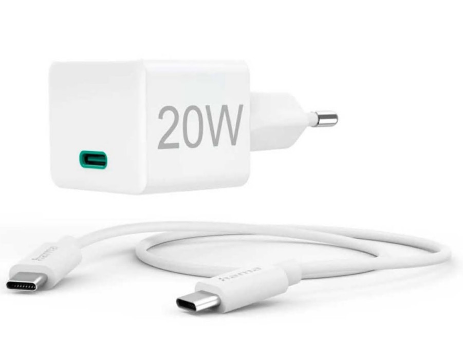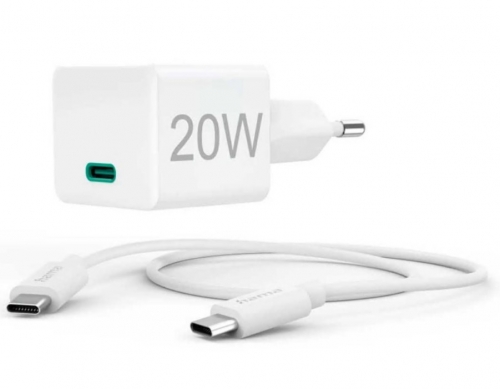 HAMA CARREGADOR RÁPIDO COM CABO DE CARREGAMENTO USB-C, MINI CARREGADOR, PD, 20 W, 1 M, BRANCO