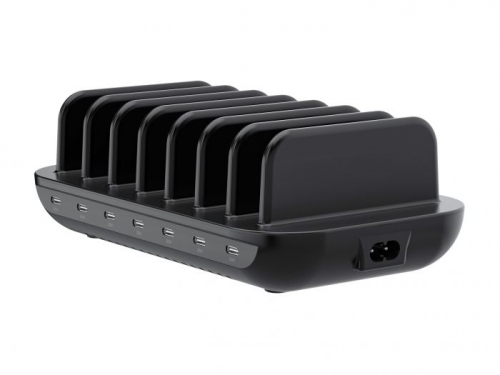 Equipada com sete portas USB-C, esta estação de carregamento utiliza a tecnologia USB Power Delivery (PD) 3.0 para fornecer carregamento rápido e eficiente para vários dispositivos simultaneamente. Duas portas USB-C de alta potência oferecem até 60 W cada, ideais para laptops e tablets. As outras cinco portas USB-C oferecem até 20 W cada, sendo perfeitas para smartphones e outros dispositivos móveis. Com uma capacidade de saída total de 160 W, ela mantém todos os seus dispositivos carregados e prontos para uso.