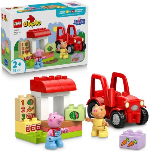 Ajude as crianças a cultivar a criatividade com o brinquedo de construção Porquinha Peppa Trator e Mercado (10468).