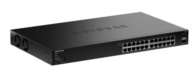 NETGEAR GS324TPv2. Tipo de switch: Gerenciável, Camada de comutação: L2/L3. Tipo de portas Ethernet RJ-45 básicas: Gigabit Ethernet (10/100/1000), Quantidade de portas Ethernet RJ-45 básicas: 24. Full duplex. Tabela de endereços MAC: 16.000 entradas, Capacidade de comutação: 52 Gbit/s. Padrões de rede: IEEE 802.1D, IEEE 802.1Q, IEEE 802.1ab, IEEE 802.1p, IEEE 802.1s, IEEE 802.1w, IEEE 802.1x, IEEE... Alimentação via Ethernet (PoE). Montagem em rack, Formato: 1U