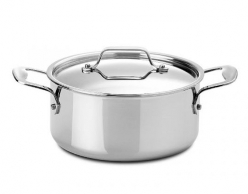 Aço inoxidável (acabamento polido). Asas rebitadas. Com a utilização da tecnologia Multidisc é possível extrapolar as vantagens do fundo térmico para todo o corpo da peça (fundo + paredes térmicas). Distribuição uniforme do calor. Mantém a temperatura por mais tempo.