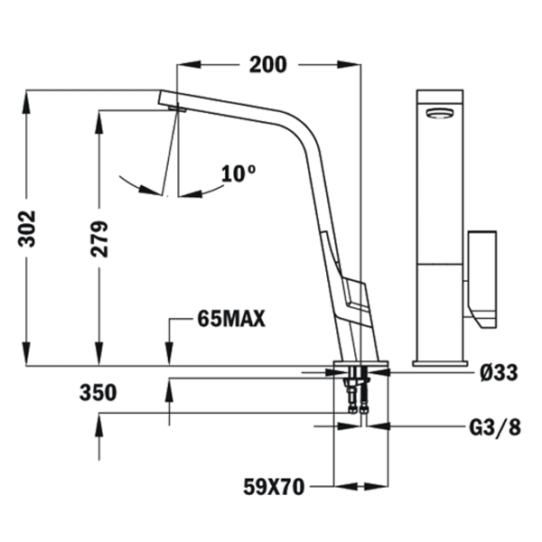 Monocomando para lava-louças com cano plano goratório
