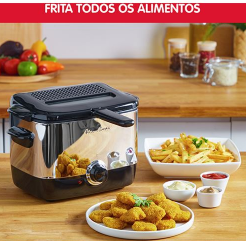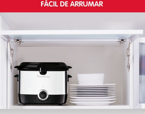 Pode fritar até 600g de batatas com apenas 1 L de óleo. Ideal para agregados familiares mais pequenos, não obriga a gastar litros de óleo para fritar pequenas quantidades. É muito prática, compacta e económica.