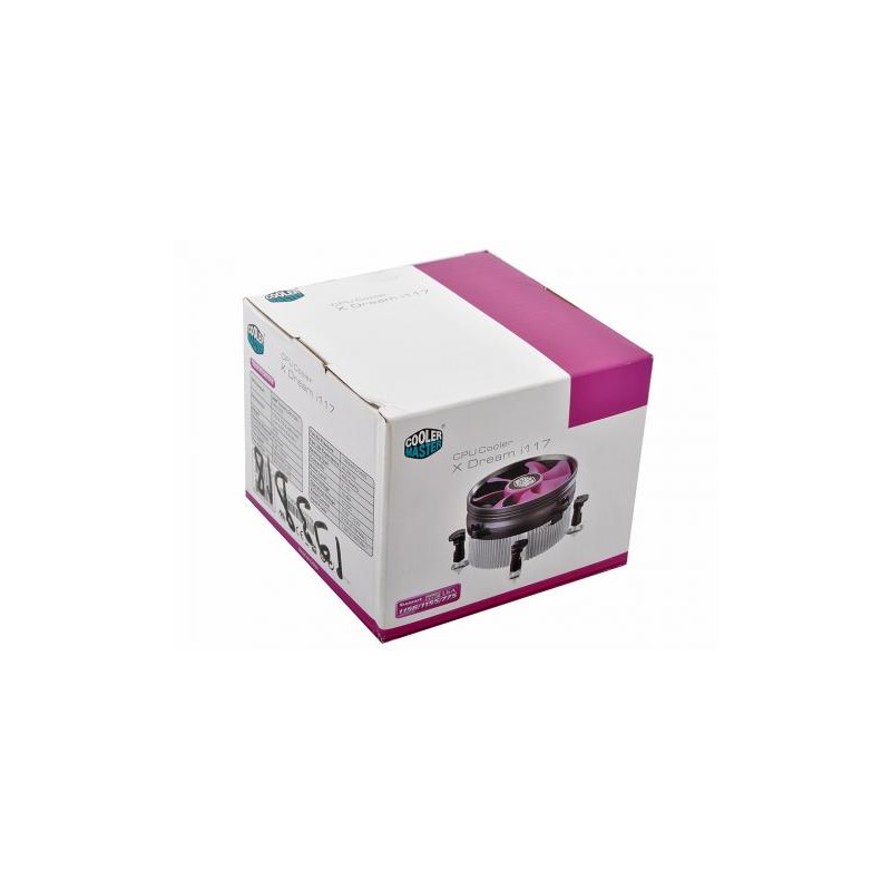 Cooler Master X Dream i117. Modelo: Refrigerador, Adequado para: Processador, Diâmetro do ventilador: 9.5 cm. Cor da caixa: Alumínio, violeta, Material: Alumínio. Corrente nominal de linha: 0.18A, Consumo de energia: 2.16W, Voltagem: 12V. Largura do produto: 11.22 cm, Profundidade da Unidade: 11.22 cm, Altura da Unidade: 6.04 cm
