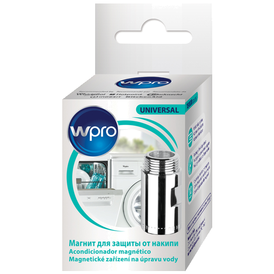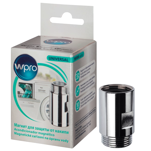 Filtro magnético anticalcário para máquinas de roupa e loiça. Os potentes ímanes presentes no filtro reduzem a formação de calcário na resistência de ambas as máquinas.