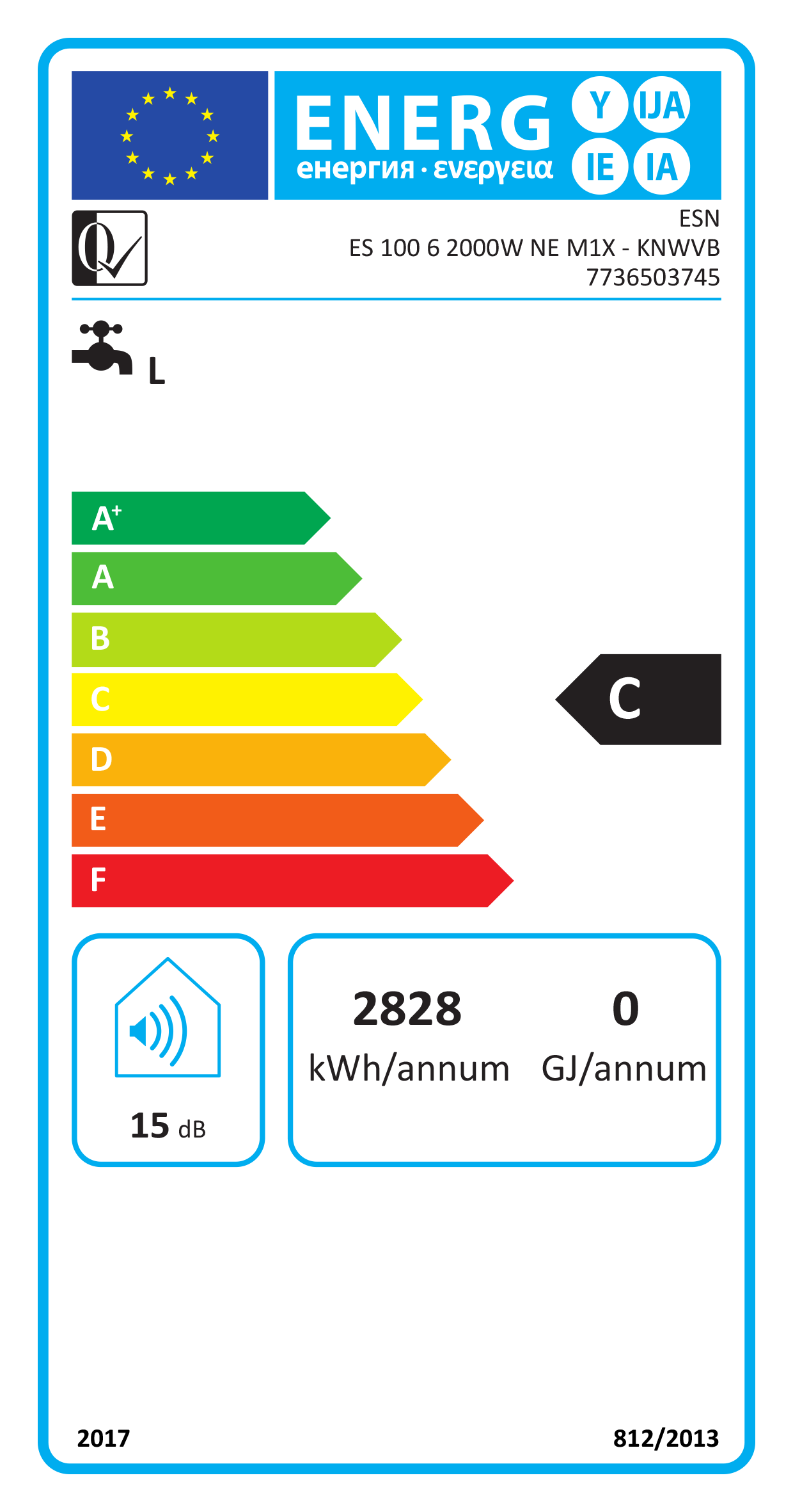 ESN 100 6 2000W NE M1X - KNWVB - Capacidade (litros): 100 L, Eficiência Energética: C, Largura: 44 cm, Potência: 2000W, Instalação: Vertical, Altura: 104 cm