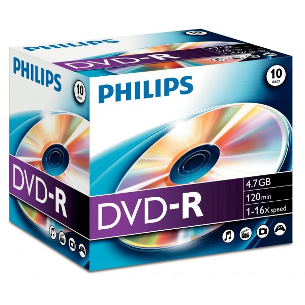 Philips DVD-R 4,7GB 16X Jewel Case (10 unidades)