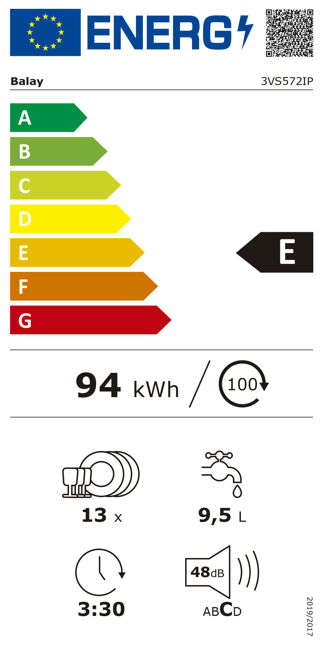 Consumo de Água:Programa ECO 50ºC: 9,5 Lts