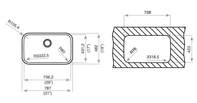 Profundidade da primeira tigela: 20 cm, Tamanho do dreno: 8,89 cm (3.5")