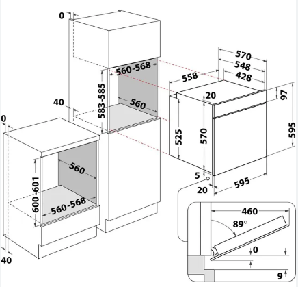 Largura do produto: 595 mm, Profundidade da Unidade: 551 mm, Altura da Unidade: 595 mm