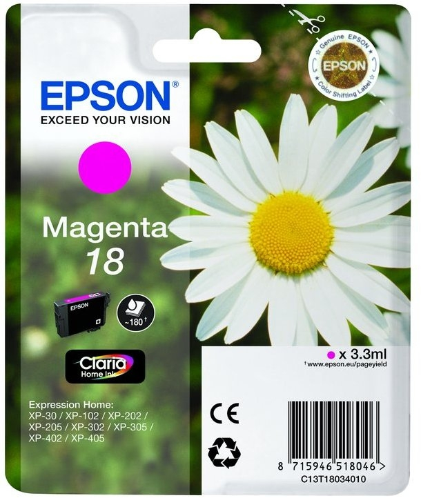 Epson C13T18034022. Compatibilidade da marca: Epson, Cor(es) dos cartuchos de impressão: Magenta, Produtos suportados: XP-30 / XP-102 / XP-30 / XP-202 / XP-205 / XP-302 / XP-305 / XP-402 / XP-405 > impressoras jacto tinta consumiveis1390NovoProduto disponívelEpson C13T18034022. Compatibilidade da marca: Epson, Cor(es) dos cartuchos de impressão: Magenta, Produtos suportados: XP-30 XP-102 XP-30 XP-202 XP-205 XP-302 XP-305 XP-402 XP-405